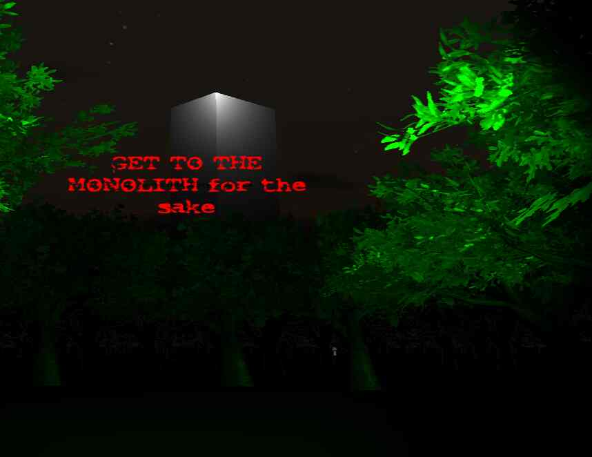 This is my first game in unity, the objective is to go to that white monolith lit up in the sky (don't let notverycoolguy beat you and snip your willy off). Also there are 2 easter eggs you can find by wandering off. (BASED OFF REAL EVENTS PULLED OUT OF MY BUNGHOLE) also can be considered a rage game